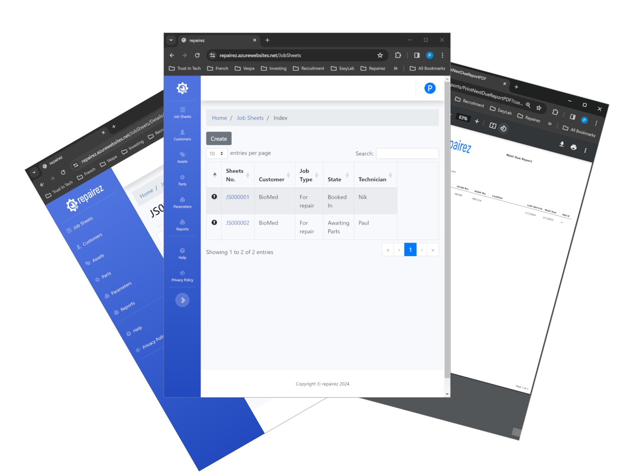 Manage job sheet details to effectively oversee and organise the various aspects related to a repair or calibration job.